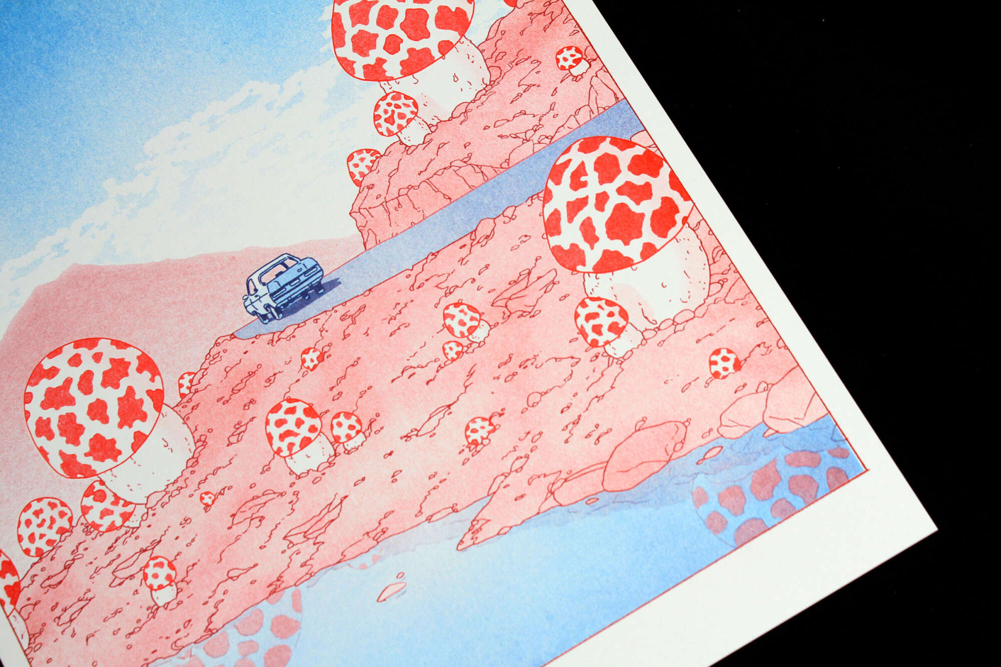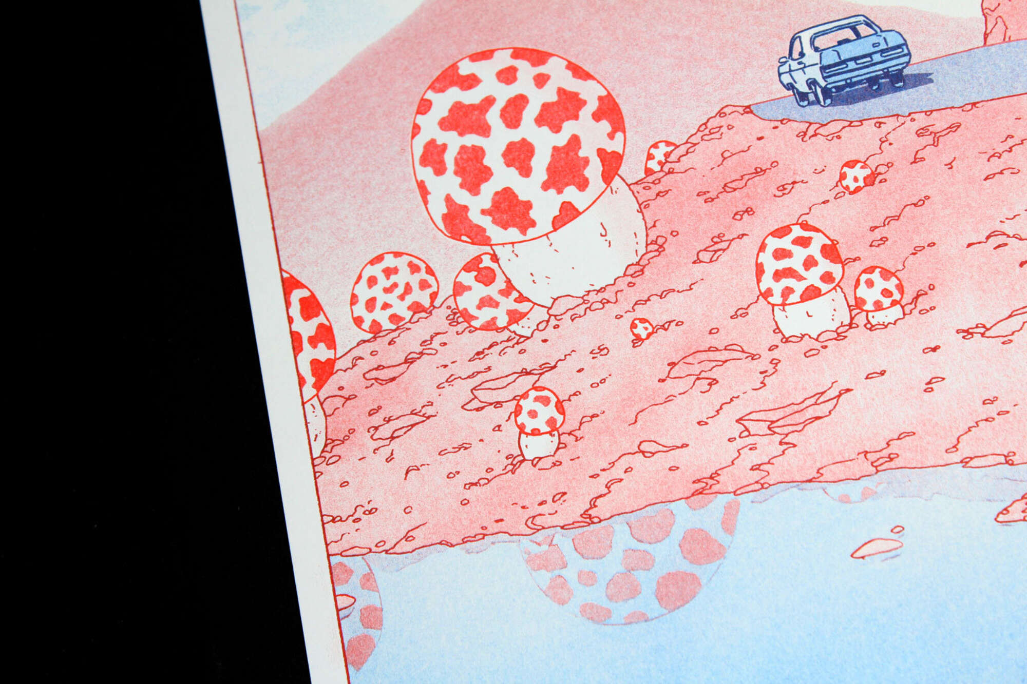 Print edition by Reykjavik-based illustrator Liam Cobb, released in conjunction with the publication What Awaits Them (2023), an anthology of Cobb's short-narrative.