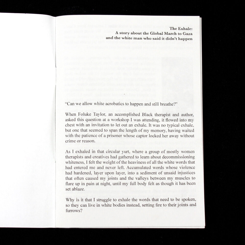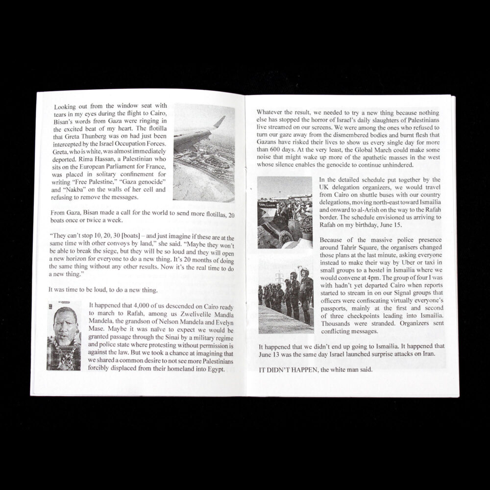 Profits from this zine will go to a Gazan business woman who's shop was torn down by the IDF, they are currently in Cairo trying to rebuild their life and find all the broken pieces. The money will be use to open a new shop, take care of family both in Egypt and Gaza, Palestine.